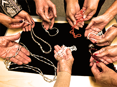 Ever think you'd like to try your hand at restringing your own necklaces, or creating lovely and unique designs of your own to wear or give as gifts - or even sell? Estelle offers classes at Cabrillo College and Santa Cruz Parks and Recreation throughout the year, as well as private lessons geared to your specific interests. Use the contact form to inquire about and schedule private lessons, or check back on this page to learn when and where the next upcoming classes will be held.
